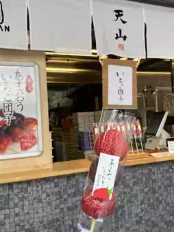 The pedestrianized streets of the old town are lined with souvenir shops and the famous grilled mochi (umegae mochi).
