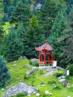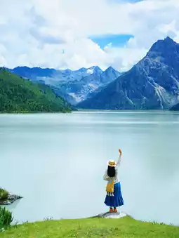 The lake water originates from the Que'er Mountain glacier. Under the sunlight, the dreamy reflection of Que'er Mountain’s main peak appears in the lake, surrounded by forested shores, creating a perfect fairyland composition that photography enthusiasts will love!