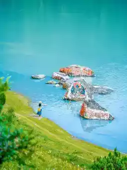 3️⃣ Wildlife encounters: Marmots are often seen near their burrows on the lakeside grass.