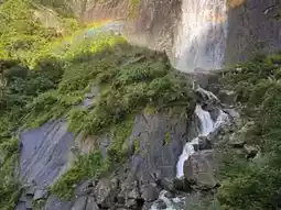 The small cable car takes you directly to the waterfall. However, walking the 30-minute plank path downhill is also a beautiful and photo-worthy option.