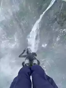 Suddenly a heavy rainstorm hit while taking photos at the waterfall🌧️