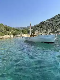 We left from Kaş early in the morning. The weather was already warm, and the sea was completely calm. Once the boat pulled away from the harbor, things immediately felt more relaxed — no rush, no noise, just the sound of the waves and fresh air.