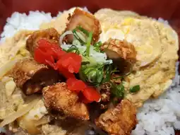 Chubby noodles and refreshing broth! It feels like it's faithful to the basics, with the right amount of vegetables and toppings. It's pork rice bowl, but the sauce was sweet and savory.