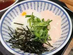 It goes even better when shared with udon. The side menu is Mentaiko Onsen Tamago Don.