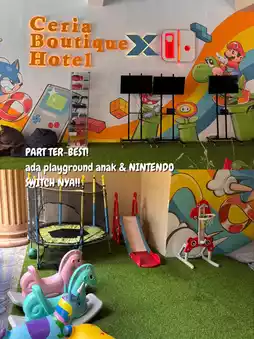 Hotel amenities? There's a restaurant and kids' playground, and there's even a Nintendo Switch too! Cool, right? 🫵🏻