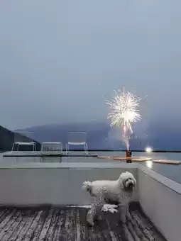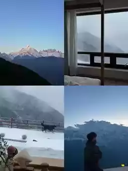 There is also a cloud bistro and viewing platform on the top floor. The hotel will set off fireworks at 7:20pm 🎆 Snow mountain fireworks under the blues are too romantic 🥺 At 8:30 pm you can also watch the Kawagbo documentary 🎬 on the roof