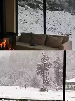 Similar to Yeyu’s floor-to-ceiling windows but no need to stay overnight. It feels like owning an entire valley, peaceful and harmonious. Looking up, there’s an unobstructed mountain view, mist, sea of clouds, snow mountains, birdsong... isolating all noise, slowing down the pace of mountain life.