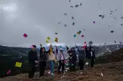 Standing on weathered rocks, the wind carries the sound of prayer flags fluttering past our ears. As we toss Lungta into the air, the colorful paper pieces ride the currents, dancing with the golden leaves. These squares inscribed with scriptures seem like letters sent to the snow-capped mountains, carrying our wishes and prayers into the vast expanse of nature.