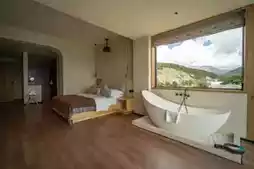 you can enjoy mountain views right from the bed or while soaking in the bathtub, surrounded by breathtaking scenery.