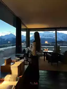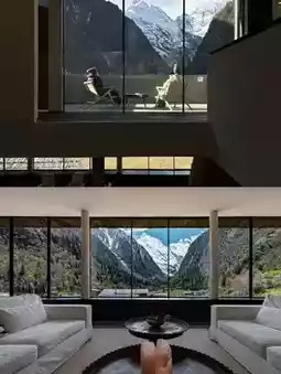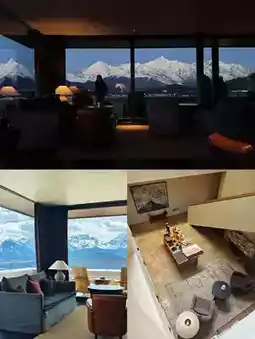 The hotel lobby features a 14㎡ panoramic floor-to-ceiling window with an amazing view👍, directly facing the snow mountains and meadows. On clear days, you can enjoy the golden sunlight on the mountains from your room. Every room is designed with panoramic windows facing the Goddess Peak and the Five Crown Peak.