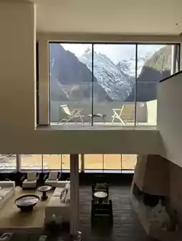 Located in Lower Yubeng Village at the foot of Meili Snow Mountain, the hotel is within walking distance to the pristine forest leading to the Divine Waterfall. It is the closest wild view hotel to Meili Snow Mountain. The lobby public area has a 14-meter-wide panoramic floor-to-ceiling window🏞️, offering views of meadows, forests, and snow mountains.