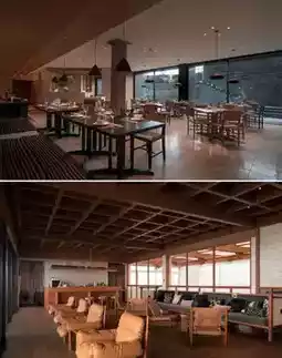 With the soul of "the fusion of nature and faith," Dalu Zhiye integrates Tibetan spirituality into modern minimalism. The hotel is built along the mountain, preserving the original terrain, with wooden structures dialoguing with the snow mountains and dense forests. Opening the window reveals Kawagebo Peak; when the sea of clouds surges, it looks like a floating fairyland, and when night falls, the Milky Way is within reach. The public area "Ye You Ka" displays Tibetan handmade copperware and thangka paintings, while "Ye You Ji" fills the air with the aroma of butter tea and Yunnan small-grain coffee. The wooden long table records travelers' stories, and the flickering fireplace firelight feels like the warmth of faith.