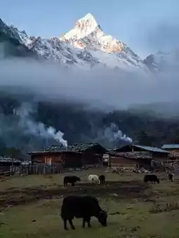 Nestled at the foot of Meili Snow Mountain, Yubeng Village is connected to the outside world by only one hiking trail, known as the “real-life Kunlun Xu.” The village is wrapped in morning mist, wooden houses with curling smoke, and cattle and sheep grazing on the grass, instantly healing urban fatigue.