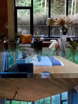 There are 15 rooms in total. The room adopts Japanese minimalist style, and the 270-degree floor-to-ceiling glass is really beautiful - you can see the blue sky and white clouds and the bamboo forest all over the mountain while lying on the bed, and you can also see a lot of stars at night.