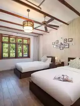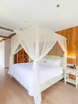 Two elegant buildings are hidden in the 4A-level bamboo forest of Mogan Mountain, where white walls and black tiles complement the lines of the mountains. 19 guest rooms frame the mountain mist and clouds as natural murals, and the log furniture and wabi-sabi style lamps weave a Zen space. Wake up and push open the window, negative oxygen ions wrapped in bamboo fragrance pour in, and every breath carries the gifts of the mountains.