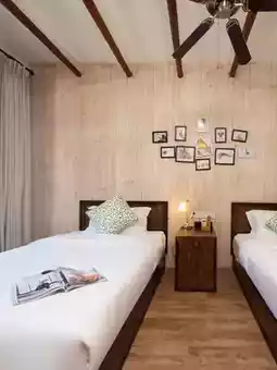 ▫️Twin Room: Bamboo woven chandelier + comfortable tea table