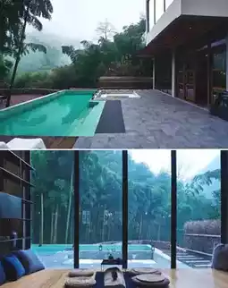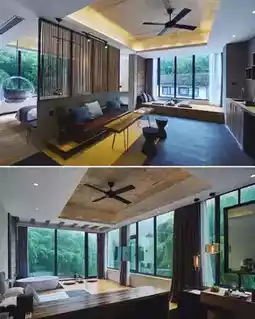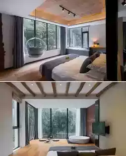 Created by designer Shen Yong and homestay manager Sister Lou, the two buildings are built against the mountain and beside the water. "Mountain Courtyard" is nestled in the forest, while "Water Courtyard" is built along the stream, blending seamlessly with the bamboo forest, rammed earth walls, and wooden frames. The 270° panoramic floor-to-ceiling windows are the soul of Hidden West. In spring and summer, lush greenery abounds, while in autumn and winter, mist and clouds linger, making each window a moving landscape painting. The interior features old wood, cotton, linen, and brass textures, with warm yellow lights outlining a tranquil space interwoven with Zen and modernity.