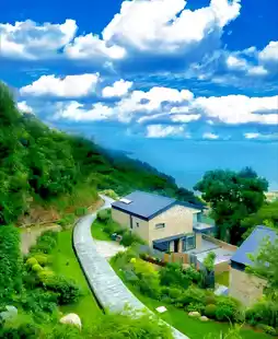 Pretend you're on vacation in the Mediterranean! The room comes with a stargazing skylight. Soak in the mint blue cold spring pool and watch the Milky Way like crushed diamonds scattered across the night sky 🌌 The homestay also gives away handmade sachets, so you can take the mountain atmosphere home with you~