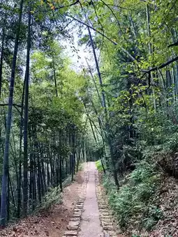 Starting from Yucun Square, the trail winds through bamboo forests and ancient paths, ascending stone steps. Passing by Jianchi Pool, Ancient Wangwutai Platform, Luhuadang Park, and Naked Castle, then returning to the mountain foot—the entire route spans about 10km.