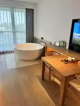 The resort features restaurants, activity centers, free Wi-Fi, yoga sessions, and additional services such as room service. Due to its large size, electric cars are available to transport guests between their rooms and the reception area. The resort is adorned with numerous fruit trees, and guests can enjoy complimentary fresh fruit in their rooms!