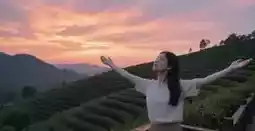 Ditch ¥188 afternoon tea! Squat at "Dadouwu" viewpoint → Frame tea fields with sunset (caption: "Stock market molten sunset")
