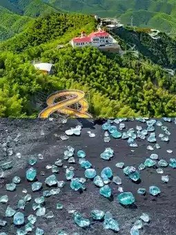 At the foot of the mountain lies an emerald-green pool amidst bamboo forests, crystal-clear to the bottom. Up the mountain, several castles make perfect photo backdrops. Take the cable car up and feel the temperature drop—super refreshing! Enjoy activities like cloud coasters, glass rafting, and rail sledding, all with minimal hiking required.