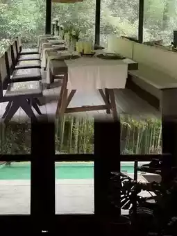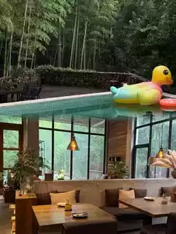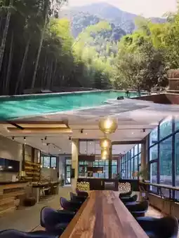 - **Dining**: Locally sourced ingredients 🥬. Breakfast features freshly ground soy milk 🥛 and bamboo-tube steamed rice 🍚. Meals highlight seasonal mountain dishes, with specialties like bamboo chicken stew 🐔 and braised pork with dried bamboo shoots 🍖—deliciously memorable. Enjoy English afternoon tea 🍰 in the glass tea house or mojitos 🍹 at the bar in the evening.