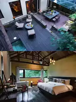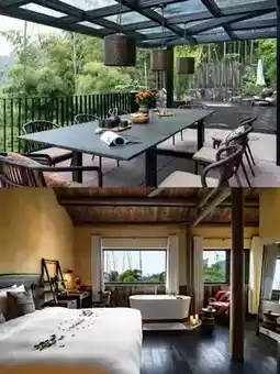 The public areas are also super enjoyable: the courtyard is as exquisite as a painting, perfect for gathering around a stove to brew tea🍵 or soak in the hot springs♨️; the café, bar, outdoor pool, and viewing platform are all fully equipped. Whether with kids or friends for a few days, you’ll never be bored~