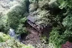 ⛰️ Sword Pool: The largest attraction on Moganshan and the origin of the mountain’s name. Get off at the "Sword Pool" stop by sightseeing bus, then walk down over 1,000 meters from the entrance, about 30 minutes, all on stone steps, which is quite physically demanding. There is a slide halfway up the mountain, only for guests returning from the bottom to the top (at the downhill entrance stop), costing 120 yuan per person. There are small shops in the scenic area selling drinks, ice pops, bamboo sticks, and disposable raincoats.