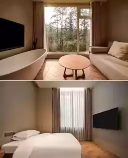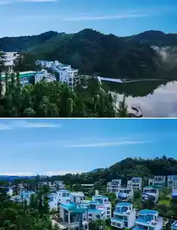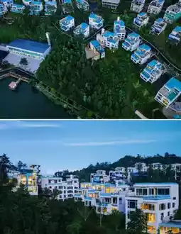 The hotel centers around the concept of "suspended swimming." The entire resort features 208 scenic swimming pools (a Guinness World Record challenge level!), including Asia’s first 33-meter-high suspended glass pool, like a blue ribbon tied between the mountains. Looking down, you can see forest ravines; looking up, you can touch flowing clouds and stars. The architecture blends blue and white tones with greenery, with 88 villas scattered throughout. White sandy beaches, red sailboats, a water chapel, treetop houses, and glass plank bridges decorate the area—every step is a scenic view.