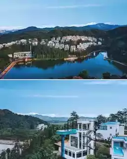 A family-friendly hotel surrounded by forest and lakes: Mogan Mountain · Suspended Swimming Shilily