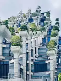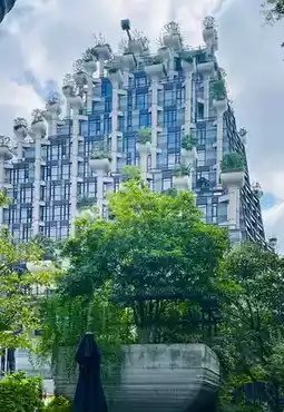 Walking along the Suzhou River, you’ll see a unique building ahead, with lush greenery on its staggered and orderly floors. The mountain-peak-shaped balconies resemble a sky garden. Under the blue sky and white clouds, geometric high-rise buildings form a distinctive backdrop. Tian'an Qianshu is a multi-functional complex that also includes a large-scale shopping mall, art walls, a museum, and more. Tian'an Qianshu is located at 600 Moganshan Road, originally the site of an old flour and machinery factory.