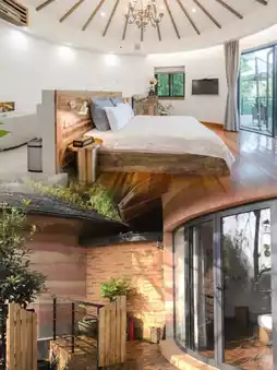 Time here slows down. During the day, you can relax on the 1,000-square-meter lawn or follow forest trails to find herbs and make your own scented candle. In the afternoon, bask in the sun at the café and taste fresh fruits and dried carrots supplied directly from the farm, experiencing the freshness of "farm to table." The attentive little butler prepares the check-in guide early, with thoughtful details like pick-up at the entrance and pre-setting the air conditioning, full of warmth.