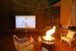 Wrapped in blankets, nibbling on sweet potatoes roasted by the host