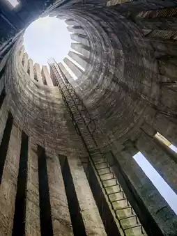 Crafted from 1,000 tons of concrete and steel, the cylindrical spire features 20 vertical fins clad in polished stainless steel, evoking both the jagged scars of war and the surge of revolutionary spirit. Narrow slits invite visitors inside, plunging them into a dim, confining chamber that mirrors the anguish of battle—darkness pierced by glimpses of the verdant valley below, symbolizing fleeting hope amid despair.
