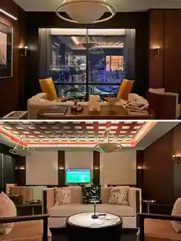 Qatar Waldorf Astoria Doha West Bay The hotel's simple lines, strong contrasting colors, and luxurious decor create a strong sense of 1930s New York City! The hotel's sky pool is more than 7 meters high, and the spacious space conveys a free and unrestrained attitude towards life. The large floor-to-ceiling windows capture the city's neon lights and the distant desert, offering a stunning view.