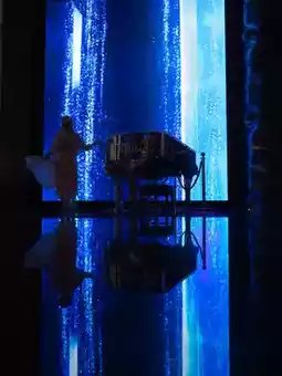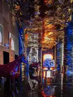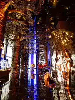 Upon entering the lobby, I felt like I had stepped into a magical tree hollow. A gigantic, metallic banyan tree stretches from floor to ceiling, filling the entire lobby. This is a whole new image of Banyan Tree for me. On both sides are huge red and blue screens, which I call "A Song of Ice and Fire."