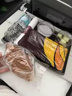 The in-flight meal was a croissant, egg omelette, chicken and sausage. This dessert, which was like almond tofu with chia seeds, was also delicious🍰