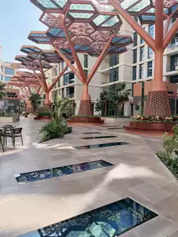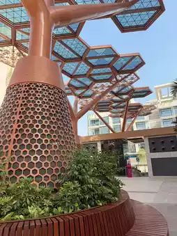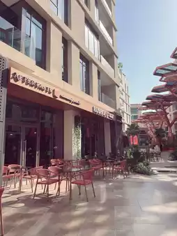 a vibrant, air‑conditioned outdoor promenade with luxury shops & restaurant 🥘 ☕️