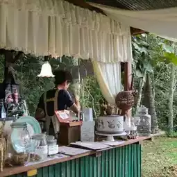 This is a cafe nestled in the middle of the forest with a wonderful atmosphere. Located in Pa Miang Subdistrict, Doi Saket District, Chiang Mai Province, the shop is designed in a wooden house style, surrounded by a stream, tall trees, and a shady lawn. The shop also offers coffee and non-coffee drinks, as well as bakery items.