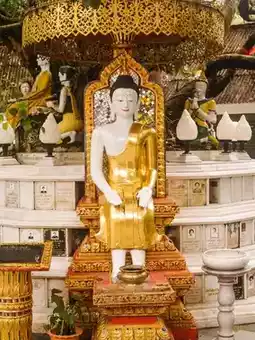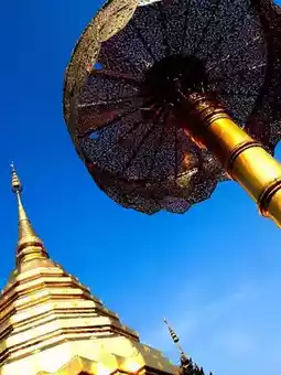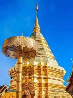 - The gleaming golden chedi towering in the temple grounds, reflecting the dazzling sunlight, is a breathtaking sight.