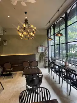 From the moment I stepped into GeeksCoffee, I loved the atmosphere. The large windows offering a view of the outside made me feel as if I were sitting in a forest, creating a relaxing atmosphere. The interior was clean and sophisticated, yet warm, and I wanted to stay a while. The coffee was clean and not overpowering, with a refreshing acidity that made it easy for anyone to enjoy. The desserts paired with the drinks were also very satisfying. Best of all, the shop was quiet and cozy, making it a great place to read a book or work on my laptop. It was a great atmosphere for conversation, even with friends. Overall, I thought it was a great cafe for a relaxing time.