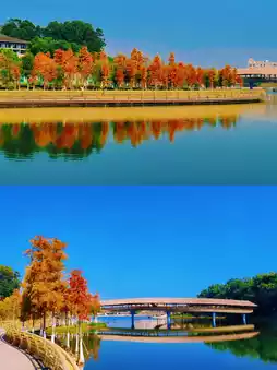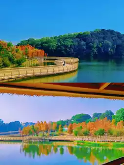 🎈The Caolong Bridge has a unique design, and the lights on the bridge turn on at around 7 pm. It looks like it's woven from grass, and it's very dreamy. The Eight Views of Donghu have a rich historical background. There are also forests of redwoods and beautiful scenery. The pavilion at Qiufeng Wharf is unique, and you can rest there and enjoy the lake view💓