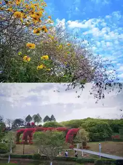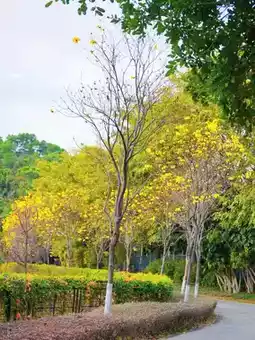 5️⃣ At the exit of Caiye Botanical Garden towards Green Road, there is a long path with firecracker flowers and yellow bell trees (very beautiful)