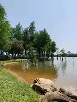 In addition to the natural scenery, there are bird-watching areas along the way, people relaxing under trees, others napping in hammocks, some picnicking with their dogs under the shade, and even a five-star hotel across the lake. It’s truly a picturesque and leisurely destination!