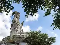 The beauty of Guanyin Mountain lies not only in its natural scenery but also in its profound cultural heritage. At its summit stands the world's largest granite statue of Guanyin, towering 33 meters high and weighing 3,300 tons, meticulously assembled from 999 pieces of premium basalt granite. This majestic statue, with its compassionate gaze overlooking all beings, offers spiritual awe and solace. The Guanyin Temple, located here, has thrived for centuries, drawing countless devotees who come to pray for peace and happiness. Strolling through the temple, listening to the soothing chants and bell tolls, one feels a serene solemnity that gradually calms the heart.