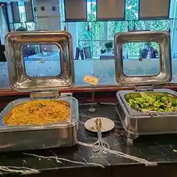 There was also a clothes dryer, which is rare in hotels. The family room features a tent and a small wooden horse for children to play with. The view from the hotel room overlooks the park. Yinxian Villa Hotel is a four-star hotel. The service level is excellent. The hotel is right next to the park. It was easy to take the kids out for a two-day, one-night trip. The breakfast buffet the next day was also extensive and good, with many of my favorite cold dishes. The restaurant was very comfortable. I would definitely return!