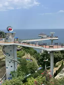 ๐ก At the sea observatory, the floor is transparent, allowing you to see the stunning ocean below. It's also a great photo spot. You can enjoy the refreshing sea view and have fun riding the sky bike.