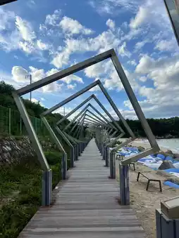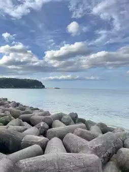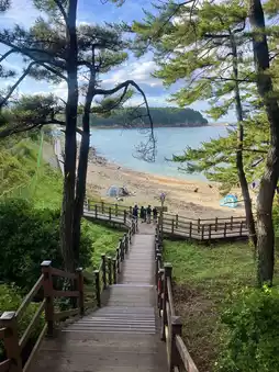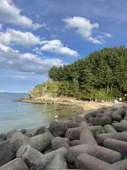 Hansseom Beach is a charming, tranquil destination in Donghae. It's located near the bustling Donghae City Hall area, making it easy to reach on foot. Gamchusa Temple is also nearby, making it a great spot for strolling along the deck! The breakwater photo zone is safe and beautifully decorated, making it a must-see photo spot. There's also a tunnel with a view of the ocean and a small structure exhibition, making it a truly rewarding experience.