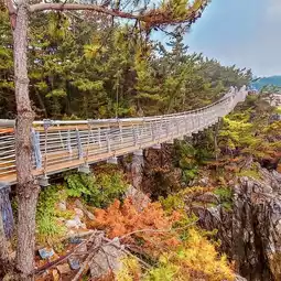1. **Korea’s Only Ocean Suspension Bridge**: This 72-meter-long bridge, opened in 2019, is uniquely built over the ocean, offering thrilling views of the East Sea and surrounding rock formations like **Chotdaebawi (Candlestick Rock)**—a legendary sunrise spot featured in Korean dramas like *Winter Sonata* .